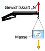 Aufgrund der Erdbeschleunigung erzeugt die Masse Gewichtskräfte (Abb. 12). Sie ergeben sich aus der Masse multipliziert mit der Erdbeschleunigung.