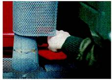 Durch Kontakt des Kranführers oder Dritter mit Auspuffleitungen kann die Gefahr von Verbrennungen gegeben sein (Abb. 43). Dem kann durch die Verkleidung der Auspuffleitungen mit einem Berührungsschutz vorgebeugt werden. Maßstab, ob ein solcher Schutz erforderlich ist, ist DIN EN 563. Bei der Ausführung und Gestaltung des Berührungsschutzes sind für die Beurteilung der Erreichbarkeit DIN EN 294 und 811 maßgebend (Abb. 44).