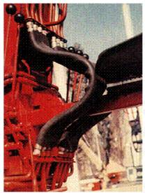 Die Ausführung, Verwendung, Verlegung, Überwachung und das Auswechseln von Hydraulik-Schlauchleitungen (Abb. 52) ist in den "Sicherheitsregeln für Hydraulik-Schlauchleitungen" (ZH 1/74) geregelt. Dort wird auch auf die einschlägigen Normen verwiesen. Auf die normgerechte Verlegung ist besonders zu achten.