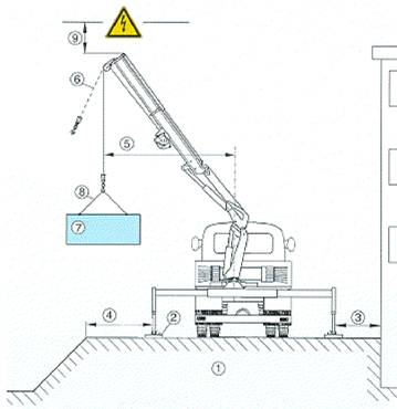 Am Einsatzort des Lkw-Ladekranes muss der Kranführer dafür Sorge tragen, dass er den Kran in die für die Durchführung der Arbeit günstigste Stellung bringt. Die Beachtung folgender Punkte bewahrt ihn davor, dass sich ggf. die Kranarbeit als undurchführbar erweist und der Lkw-Ladekran umgesetzt werden muss oder durch Improvisation oder vorschriftswidriges Arbeiten Unfälle verursacht werden (Abb. 139).