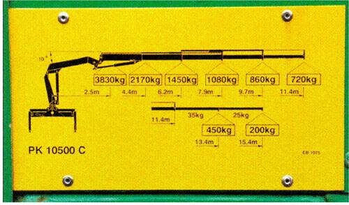 Aus dem Tragfähigkeitsschild (Abb. 173) entnehmen wir für eine Ausladung von 10,1 m eine Tragfähgkeit von 1.000 kg.