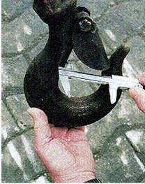 Bei der wiederkehrenden Prüfung des Kranes sind Lasthaken auf Aufweitung, Abnutzung und Anrisse zu prüfen. Der Lasthaken muss ersetzt werden, wenn folgende Mängel festgestellt werden: