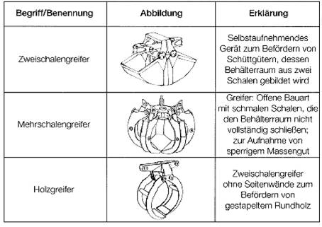 Benennungen von Lastaufnahmemitteln für Massen- und Schüttgüter