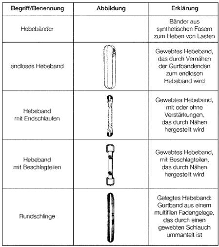 Um Schäden an den Anschlagmitteln zu vermeiden, die diese sofort unbrauchbar machen, dürfen Seile, Ketten, Hebebänder und Rundschlingen
