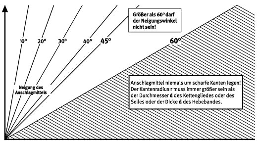 Beim Anschlagen mit mehreren Strängen dürfen nur zwei Stränge als tragend angenommen werden. Dies gilt nicht, wenn sichergestellt ist, dass sich die Last gleichmäßig auch auf weitere Stränge verteilt. Bei ungleicher Lastverteilung darf die zulässige Belastung der einzelnen Stränge nicht überschritten werden.