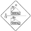 Kettenanhänger mit Tragfähigkeitsangabe für 0° - 45° und 45° - 60°. Form und Farbe nach Hersteller verschieden.