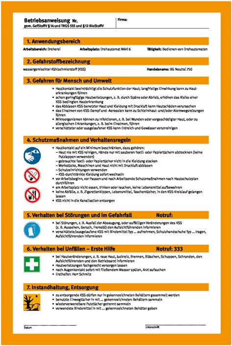 Betriebsanweisungen und Sicherheitshinweise lesen