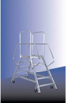 Verschiedene Arten von Arbeitsplätzen haben zu der Entwicklung unterschiedlicher Bauformen von ein- und beidseitig angeordneten Aufstiegen mit Plattform geführt, die sich in der Praxis seit Jahren bewährt haben. Die Neigung der Aufstiege ist dabei häufig geringer, als für Stehleitern üblich. Dies führt zu einem ergonomischen und damit sicheren Begehen. |