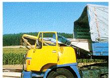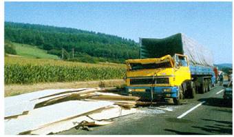 Weitaus undramatischer als in den Massenmedien wird den Berufsgenossenschaften in den eingehenden Unfallanzeigen das Unfallgeschehen geschildert. Sachlich, manchmal fast entschuldigend oder hilflos, wird als Unfallursache eine unzureichende Ladungssicherung beschrieben. Bei näheren Ermittlungen zu den Unfallursachen ist immer wieder festzustellen, dass nach wie vor der Irrglaube weit verbreitet ist, schwere Ladungen könnten während der Fahrt nicht verrutschen (Abb. 1 + 2). Sie hätten eine so hohe Gewichtskraft, dass eine Bewegung unmöglich sei. Hier die typische Antwort eines Fahrers, der auf die ungenügende Sicherung seiner Ladung hingewiesen wurde: "Steigen Sie mal auf mein Fahrzeug und versuchen Sie, die Ladung zu verschieben. Das schaffen Sie nie. Die ist so schwer, die kann gar nicht verrutschen."