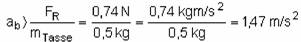 Folgende Frage drängt sich jetzt auf: Ab welcher Bremsverzögerung ab des Zuges beginnt die Tasse sich zu bewegen? Dies soll die folgende Berechnung klären: