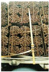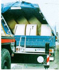 In jüngster Zeit werden wegen eines günstigeren Materialflusses an Be- oder Entladestellen große Papierrollen vermehrt stehend befördert und bei Kontrollen wegen fehlender oder mangelnder Ladungssicherung beanstandet. Papierrollen, egal ob sie stehend, liegend mit Rollrichtung in Fahrzeuglängs- oder -querrichtung, in Sattellage übereinander oder kombiniert geladen, lassen sich hervorragend sichern (Abb. 121a), vorausgesetzt, ein geeigneter Fahrzeugaufbau mit entsprechenden Hilfsmitteln steht zur Verfügung.