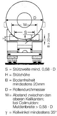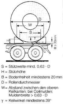 Wenn die in Abb. 111 bzw. Abb. 112 angegebenen Maße eingehalten werden, die sich überwiegend aus dem Durchmesser der zu sichernden Rolle ergeben, genügt das entsprechend VDI 2700 bei Coils als alleinige formschlüssige Sicherung.