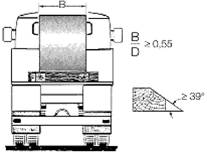 Unterschreitet bei schmalen Rollen das Verhältnis Breite: Durchmesser einen bestimmten Wert, besteht Kippgefahr. Zur Aufrechterhaltung der Standsicherheit muss der Wert B: D bei Rollrichtung quer zur Fahrtrichtung mindestens 0,7 (Abb. 115), bei Rollrichtung in Fahrtrichtung mindestens 0,55 (Abb. 116) betragen.