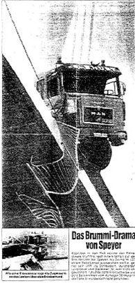 Beim Durchfahren einer Linkskurve rollte eine ungesichert zwischen Hölzern gelagerte Grobblechrolle (Coil) vom Fahrzeug. Die 15 t schwere Rolle rutschte auf der asphaltierten Fahrbahn in Fahrtrichtung so lange weiter, bis sie sich "festfraß", überschlug und auf einem Pkw landete (Abb. 113). Dies ist kein Einzelfall. Darum: Coils sollten möglichst nur mit Fahrzeugen transportiert werden, die mit einer entsprechenden Coilmulde ausgestattet sind. Es gibt Coil-Beladestellen, an denen Fahrzeuge abgewiesen werden, die nicht mit einem derartigem Spezialaufbau ausgerüstet sind.