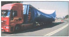 Seitliche Schiebeplanen (Abb. 123) statt Bordwände sind an Fahrzeugen mit Pritschenaufbau vermehrt im Einsatz. Diese Aufbauart ist einerseits aus Sicht der Unfallverhütung zu begrüßen. Die vielen Arbeitsunfälle, die sich beim Auf- und Abplanen von Fahrzeugen ereignen (Leiterunfälle), werden sich verringern. Andererseits ist dieser Aufbau für die Ladungssicherung nicht unproblematisch. Die Planen selbst sind zwar durch eingearbeitete Verstärkungen relativ hoch belastbar. Doch in den meisten Fällen werden die Planen als alleinige Sicherung nicht ausreichen, sondern zusätzliche Sicherungsmaßnahmen müssen angewandt werden (Abb. 123a). Als weiterer Faktor kommt hinzu, dass diese Planen durch Ladungsdruck nach außen ausgebeult werden, was zur Vergrößerung der Fahrzeugbreite und damit zu Unfällen führen kann.