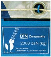 zulässiges Gesamtgewicht größer als 12 t = 2000 daN / Zurrpunkt
