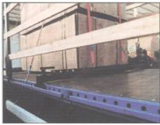 Wird dieser Mindestwert unterschritten, sind mehrere Rollen zu einer Einheit zusammenzufassen oder sonstige Maßnahmen zu ergreifen, z.B. Abstützung, um ein Kippen auszuschließen. In Abb. 117 sind mehrere schmale Coils (Spaltbänder) zu einer Einheit zusammengefasst. Ein besonderes verstellbares Ladegestell verhindert bei diesem Fahrzeugaufbau jegliche Bewegung des Coils in Fahrzeuglängsrichtung, ähnlich wie die in die Coilmulden einsteckbaren Rungen (Abb. 118), die sowohl als Sicherung gegen Kippen als auch gegen Verrutschen in Muldenlängsrichtung wirken.