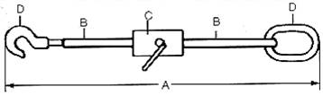 Wie in Abb. 133 dargestellt, ist Zurrmittel (A) der Sammelbegriff für Zurrgurte, Zurrketten und Zurrdrahtseile. Ein Zurrmittel setzt sich üblicherweise zusammen aus dem Spannmittel (B) (Gurt, Rundstahlkette oder Drahtseil), einem Spannelement (C) und zwei Verbindungselementen (D).