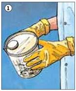 Bei der Arbeit Schutzhandschuhe und Schutzkleidung tragen, siehe geeignete Handschuhfabrikate in GISBAU Handschuhdatenbank.