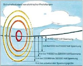Es sollte unbedingt darauf geachtet werden, ob Arbeiten in der Nähe elektrischer Freileitungen auszuführen sind.