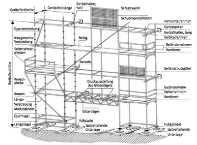 Bild 1: Bauteile eines Gerüstes und deren Benennung