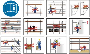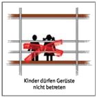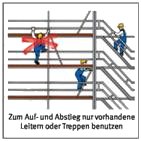 Die allgemeinen Sicherheitshinweise können auch in Form von Piktogrammen am Gerüst angebracht werden. Sie können dem Anhang 6 entnommen werden.