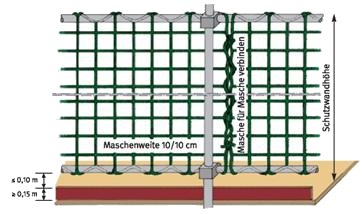| Ist die Schutzwand aus Schutznetzen oder Geflechten ordnungsgemäß am Gerüst befestigt? | [ ] | |