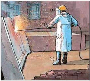 Bei sämtlichen Tätigkeiten, einschließlich der Endreinigung, und bei der Abfallbeseitigung Atemschutzgeräte (3) benutzen. Als Atemschutz kommen in Frage: