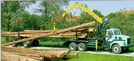 Langholz-Ladekrane sind Lkw-Ladekrane, die zum Heben von Stämmen bestimmt sind, die aufgrund ihrer Länge nicht im Stammschwerpunkt gehoben werden können und deshalb für das Verladen außer dem Heben noch ein Ziehen. Drücken oder Hebeln erfordern (Abb. 2).