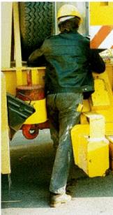 Die elektrische Anlage des Kranes muss so beschaffen sein, dass keine Gefahren für Personen von ihr ausgehen. Dies ist dann der Fall, wenn sie nach den einschlägigen elektrotechnischen Regeln, z.B. den VDE-Bestimmungen, ausgeführt ist. Entsprechende europäische Normen, wie EN 60204-1:1992 "Sicherheit von Maschinen - Elektrische Ausrüstung von Maschinen Teil 1: Allgemeine Anforderungen", liegen bereits vor, andere werden noch erarbeitet. Fehlen elektrotechnische Regeln, müssen die aktiven Teile der elektrischen Anlage entsprechend ihrer Spannung, Frequenz, Verwendungsart und ihrem Betriebsort gegen direktes Berühren geschützt sein (Abb. 35). Fehlende Abdeckungen sind zu ergänzen und Leitungen mit beschädigten Isolierungen zu ersetzen.
