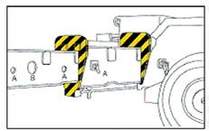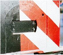 Bei letzterem lassen die durch die Straßenverkehrs-Zulassungs-Ordnung ( StVZO) begrenzten Fahrzeugabmessungen es nicht zu, den erforderlichen Sicherheitsabstand zwischen Ober- und Unterwagen zu verwirklichen. Eine Absicherung ist im Regelfall nur durch hinweisende Sicherheitstechnik in Form von Verbotsschildern und Warnanstrichen möglich.