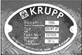Der eindeutigen Identifizierung des Kranes dient das Fabrikschild (Abb. 36), welches folgende Angaben enthalten muss:
