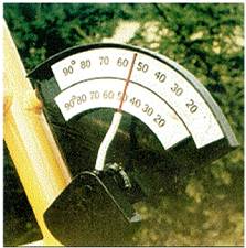 Ist der Kran mit einem Winkelanzeiger ausgerüstet, muss die Tabelle neben der Ausladung auch den Auslegerwinkel angeben (Abb. 39);
