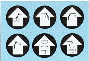 Zur Kennzeichnung des Schwerpunktes, z.B. für das Verladen von Maschinen, wird das Bildzeichen