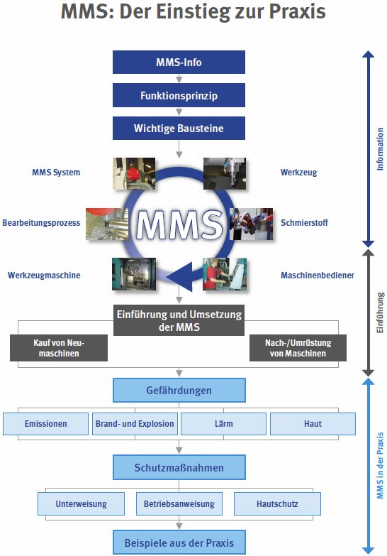 Im Bereich der spanenden Metallbearbeitung hält die Minimalmengenschmierung (MMS) zunehmend Einzug und hat sich inzwischen in vielen Gebieten als Alternative zur konventionellen Nassbearbeitung etabliert. Im Gegensatz zu der Überflutungsschmierung (Schwallkühlung) werden bei der Minimalmengenschmierung nur wenige Tropfen an Schmierstoff (ca. 5 ml bis 50 ml pro Stunde) zur Zerspanung eingesetzt.