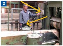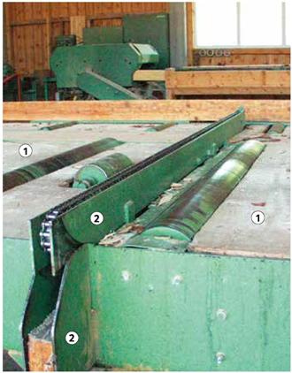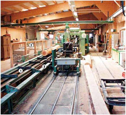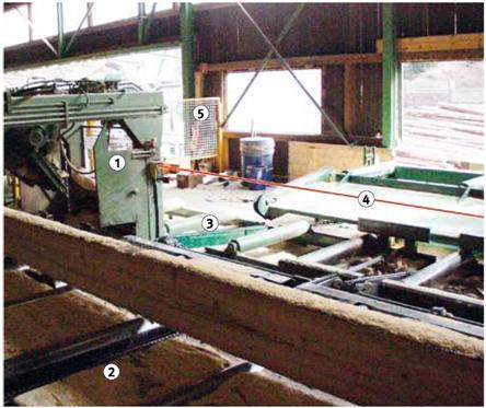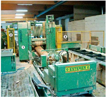 Anlagenführer anweisen, bei allen Fahrbewegungen des Gatterspannwagens sowie beim Betätigen des Stammeinlegers darauf zu achten, dass Beschäftigte nicht gefährdet werden.