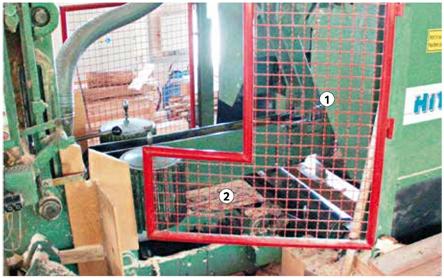 | Sicherung der Werkzeuge | Feste Verkleidungen bis auf die Einschub- und Auslassöffnung, Zugang zu den Sägeblättern über bewegliche, verriegelte trennende Schutzeinrichtung mit Zuhaltung mit Stillstandsüberwachung | Ein Berühren bewegter Werkzeuge muss soweit möglich verhindert sein | Ein Berühren bewegter Werkzeuge muss soweit möglich verhindert sein | |