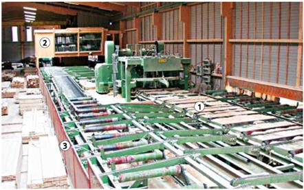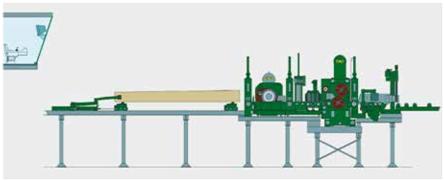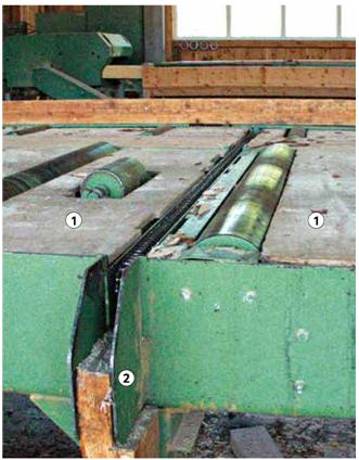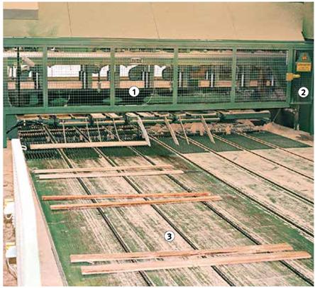 | Maschinen mit Walzenvorschub (im Gegenlauf arbeitende Sägewelle, die unter der Werkstückauflage angeordnet ist) | Maschinen mit Plattenbandvorschub | |||