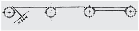 | Distanzscheiben zwischen 0,5 und 1 mm dick | Distanzscheiben max. 1 mm wenn Rückschlaggreifer gleichzeitig als Splitterfänger fungieren, ansonsten halbe Greiferbreite | Zwischenlage nicht dicker als halbe Greiferbreite | Keine speziellen Anforderungen | |