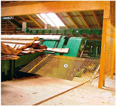 Entsorgungsöffnungen gegen Absturz von Personen sichern (z.B. durch Roste, die ein Hindurchfallen der Holzreste nicht behindern).