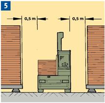 Sicherheitsabstand von mindestens 0,5 m zwischen Gatterspannwagen und festen Teilen der Umgebung (z.B. rückseitige Hallenwand; ausgenommen hiervon ist der Abstand zwischen Gatterspannwagen und Querübergabeförderer, der aus technologischen Gründen wesentlich kleiner ist).