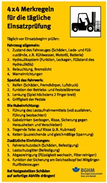 Die im folgenden beschriebenen sicherheitstechnischen Lösungen sind nach den Erfahrungen der BGHM geeignet, Risiken zu mindern und Unfälle zu vermeiden. Sie haben sich in der Praxis bewährt.