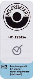 | 5) | Messverfahren siehe BGI 505-41 "Verfahren zur Bestimmung von Holzstaub" |