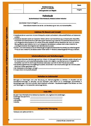 | Betriebsanweisung Holzstaub | Anhang 2 |