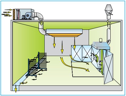 Die Raumbeleuchtung und - bei größeren Anlagen - die elektrisch betriebenen Abluftanlagen müssen im Brandfall auch nach Abschalten der übrigen elektrischen Einrichtungen betrieben werden können.