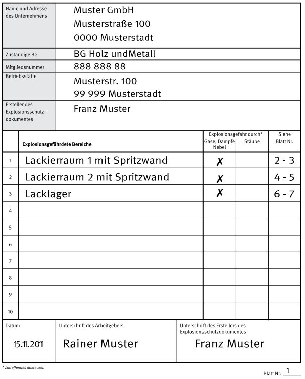 Unabhängig von den Anforderungen zum Explosionsschutz sind immer die Anforderungen zum Gesundheitsschutz zu erfüllen.