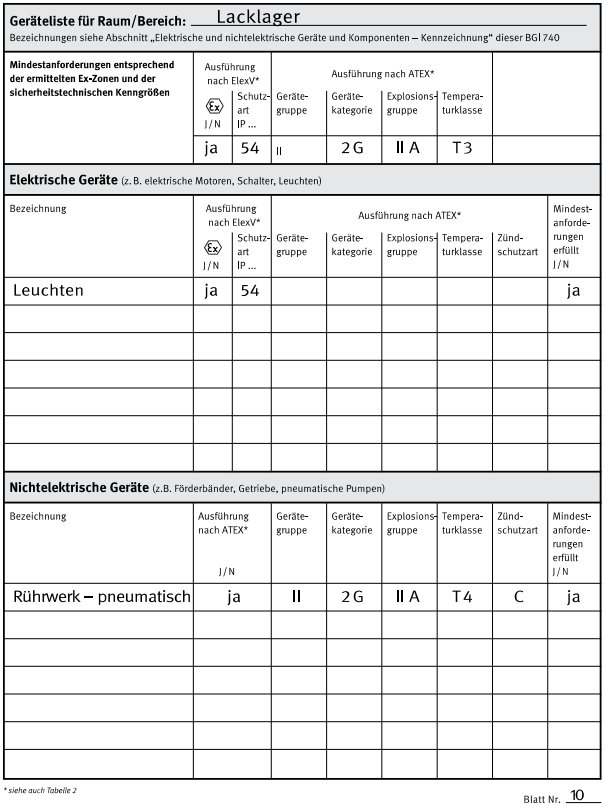Verarbeitungsbeispiele mit Angabe der explosionsgefährdeten Bereiche siehe Anhang 1.