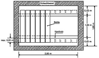 Montagegerüste in dieser Ausführung dürfen in Schächten mit einem Querschnitt bis zu max. 2,60 m x 1,80 m verwendet werden.