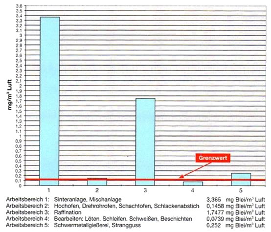 Bei Bleikonzentrationen oberhalb des Luftgrenzwertes sind Vorsorgeuntersuchungen und persönliche Schutzausrüstungen (z.B. Atemschutz) erforderlich.