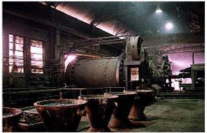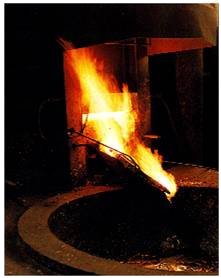 Bild 1-4: Erschmelzen von bleihaltigen Materialien im Drehofen
